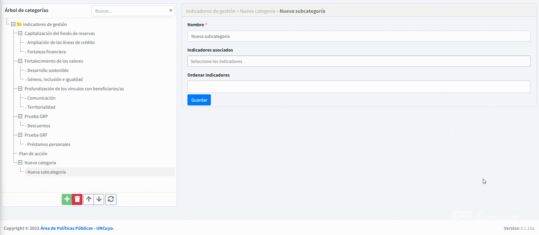 Si al momento de crear una categoría tuviese seleccionada una categoría pre-existente, esta acción creará una sub-categoría de la misma.