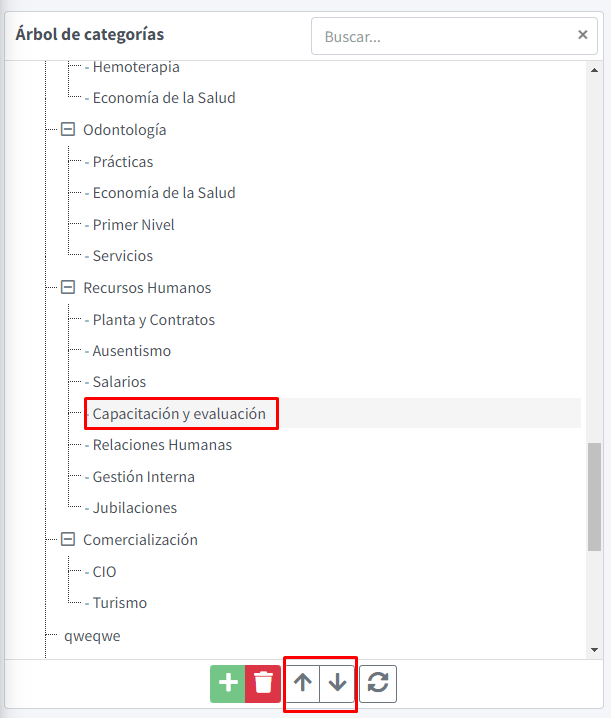 Para ordenar a gusto debe seleccionar la categoría que quiere mover y clickear los botones correspondientes para subir o bajar de nivel:
