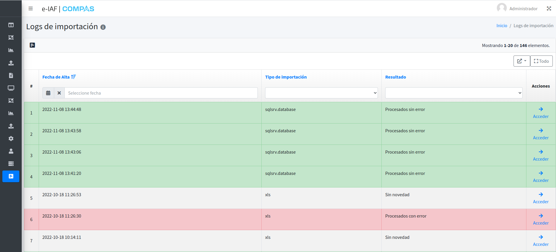 Por cada ejecución del script de importación se produce un log y dependiendo del proceso genera alguno de los siguientes resultados: